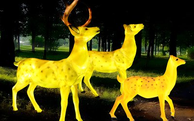 公園景區玻璃鋼彩繪照明發光梅花鹿雕塑